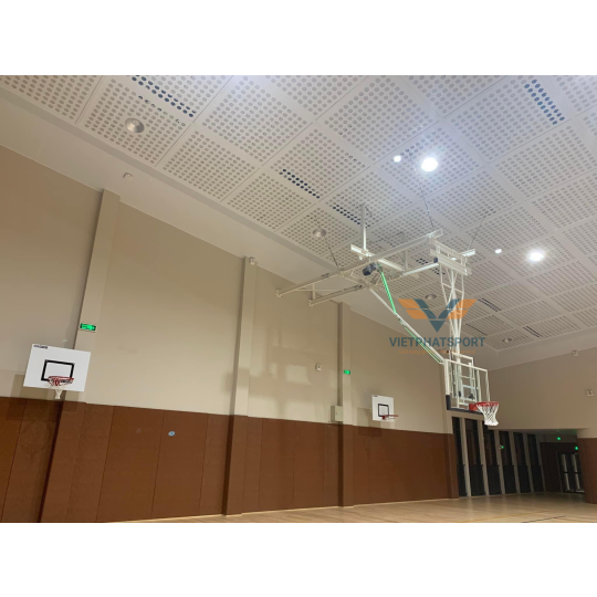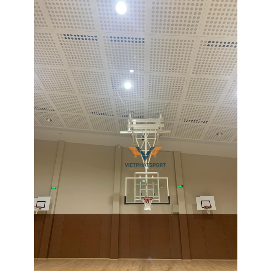 Độ cao vành rổ đạt chuẩn 3.05m, đáp ứng yêu cầu thi đấu chuyên nghiệp. Deport (khoảng cách từ bảng rổ đến tường) được thiết kế theo yêu cầu, phù hợp với từng không gian và mục đích sử dụng.