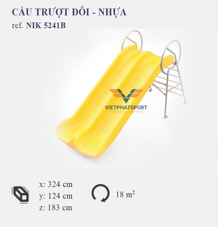 Được cung cấp bởi CÔNG TY CỔ PHẦN THỂ THAO VIỆT PHÁT, cầu trượt đôi NIK5241B tự hào là sản phẩm Việt Nam đạt chuẩn Australia về dụng cụ ngoài trời, đồng thời đạt các chứng nhận ISO 9001:2015, ISO 14001:2015, ISO 45001:2018. Chất lượng sản phẩm được đảm bảo theo tiêu chuẩn cơ sở TCCS 01:2016/VIFA và chứng nhận của Liên đoàn Thể dục Việt Nam.