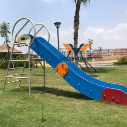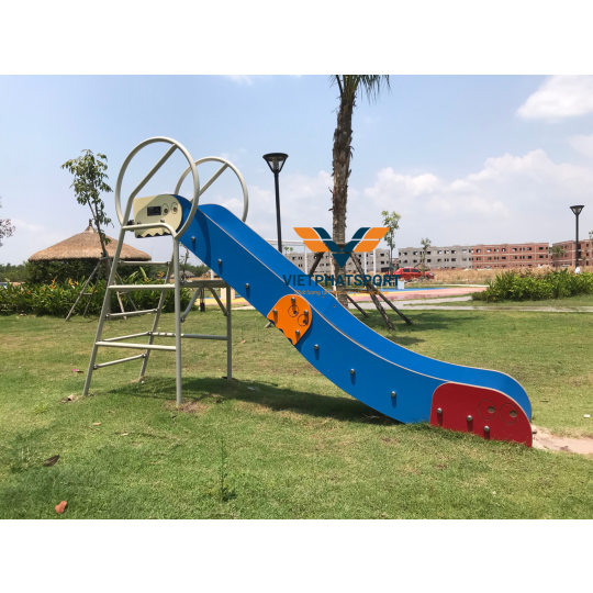 - Vật liệu chính: Ống thép D34, tấm HPL hoặc tấm HDPE, máng trượt inox