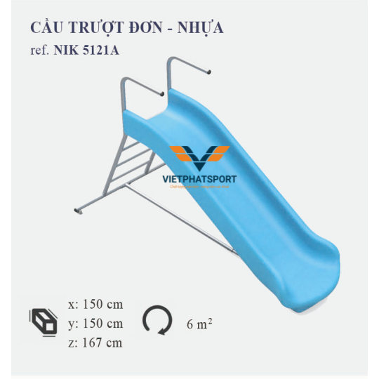 Với kích thước và thiết kế này, Cầu trượt đơn - nhựa NIK5121A phù hợp với nhiều không gian khác nhau, từ trường học đến khu dân cư.
