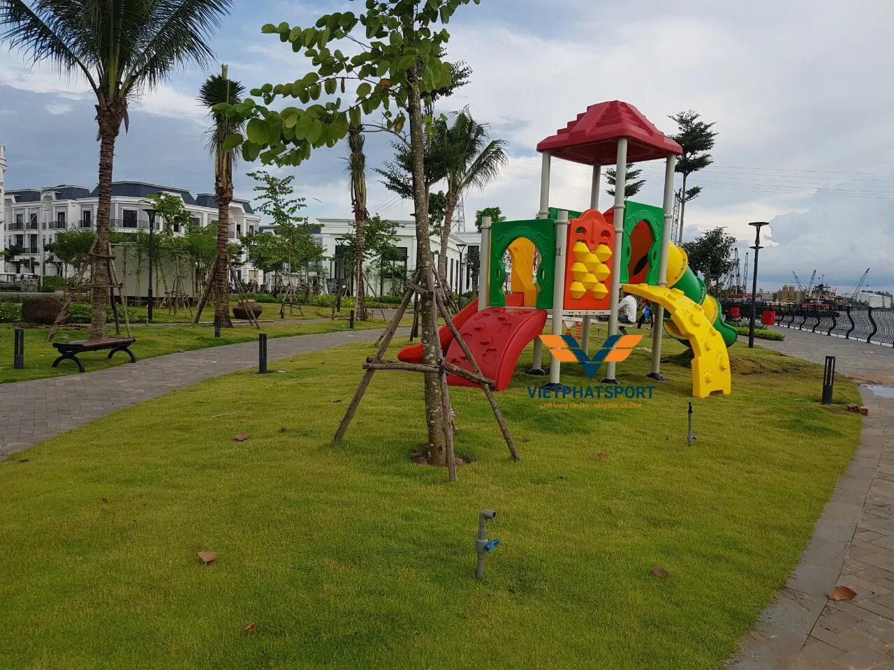 Hình ảnh thực tế sau lắp đặt của Cụm vận động cầu tuột ống nhựa LLDPE NIK124060M