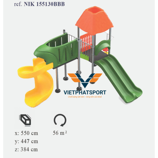 Diện tích lắp đặt phù hợp của Cụm vận động cầu tuột xoắn nhựa LLDPE NIK133070L
