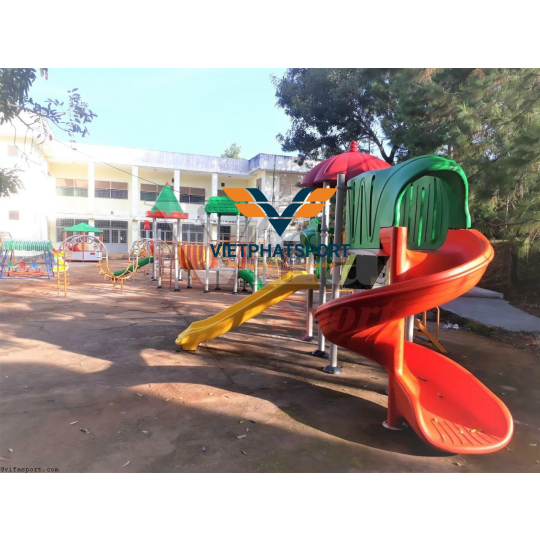 Cụm vận động được thiết kế với nhiều hoạt động đa dạng như cầu tuột xoắn, leo trèo, chui hầm, giúp trẻ em phát triển các kỹ năng vận động, tăng cường thể lực và khả năng phối hợp. Thiết kế sáng tạo cũng kích thích trí tưởng tượng và khả năng sáng tạo của trẻ.