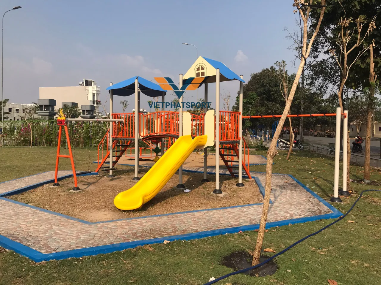 Hình ảnh thực tế sau lắp đặt của Cụm vận động liên hoàn 2 mái che NIK703221