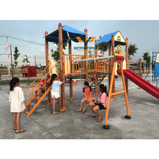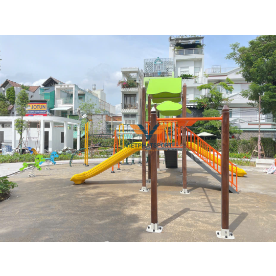 Cụm vận động liên hoàn 2 mái che, trụ gỗ NIK703221W là lựa chọn lý tưởng cho các khu vui chơi trẻ em, trường học, khu dân cư và các không gian công cộng. Được thiết kế theo tiêu chuẩn Châu Âu, phân phối bởi CÔNG TY CỔ PHẦN THỂ THAO VIỆT PHÁT, sản phẩm này không chỉ mang đến những giờ phút vui chơi sảng khoái mà còn góp phần phát triển thể chất và trí tuệ cho trẻ em.