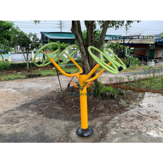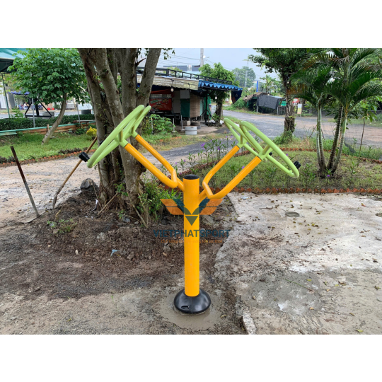* Tiêu chuẩn an toàn: Sản phẩm đáp ứng đầy đủ tiêu chuẩn Việt Nam về yêu cầu an toàn và phương pháp thử đối với thiết bị tập luyện thể dục ngoài trời được lắp đặt cố định. * Lắp đặt cố định: Dụng cụ được gắn cố định xuống nền, đảm bảo an toàn tuyệt đối trong quá trình sử dụng. * Số người sử dụng: Thiết kế cho phép 02 người cùng tập luyện, tăng tính tương tác và hiệu quả sử dụng. * Kích thước phù hợp: Với diện tích sử dụng 2m x 1.6m và kích thước tổng thể 123 x 104 x 150cm, dụng cụ phù hợp với nhiều không gian lắp đặt khác nhau.