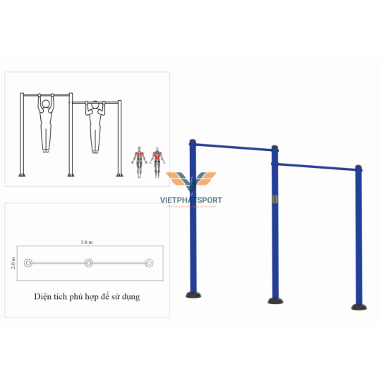 Trong bối cảnh nhu cầu rèn luyện sức khỏe ngày càng tăng cao, dụng cụ thể thao ngoài trời trở thành một phần không thể thiếu trong các khu dân cư, công viên, trường học và các dự án cộng đồng. Dụng cụ xà đơn 2 bậc 711214 là một lựa chọn lý tưởng, mang đến giải pháp vận động toàn diện, an toàn và hiệu quả cho mọi lứa tuổi.