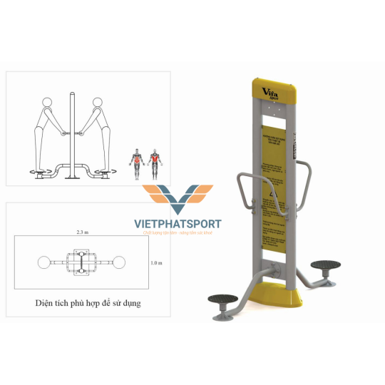 - Thiết kế thanh thoát làm đẹp hơn cảnh quan môi trường; bền chắc và phù hợp mọi địa hình, thời tiết; chuẩn xác tư thế, động tác giúp người tập tăng cường sức khỏe.