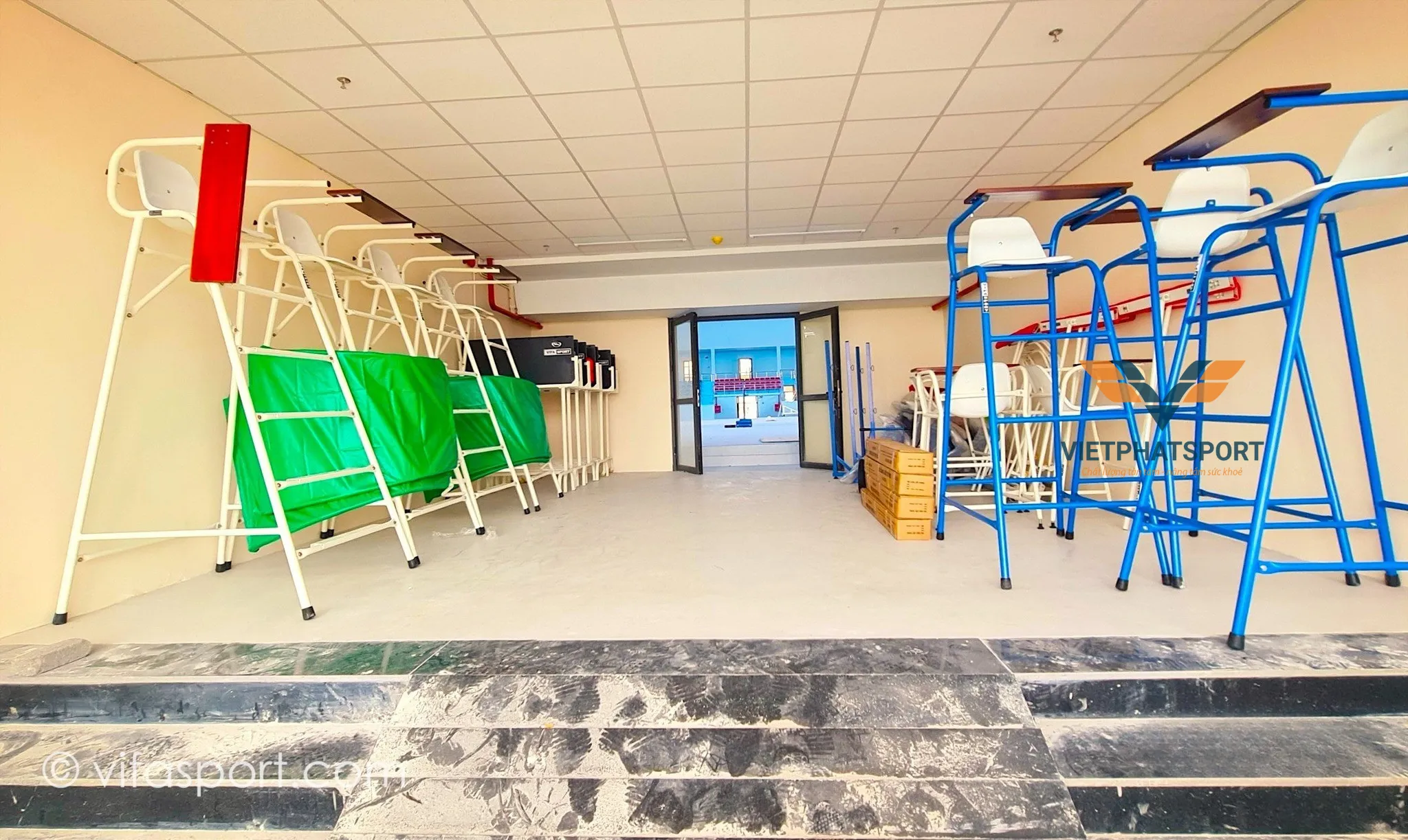Ghế trọng tài tennis 1.5m 302351 được lắp tại NTD Dĩ An, Bình Dương