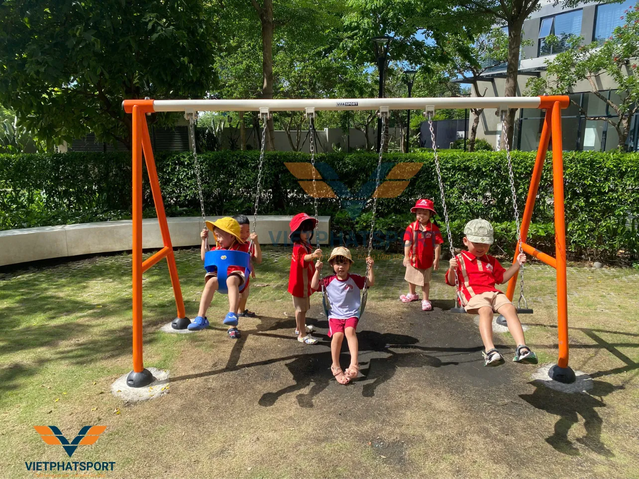 Niềm vui của bé bên thiết bị xích đu 3 ghế