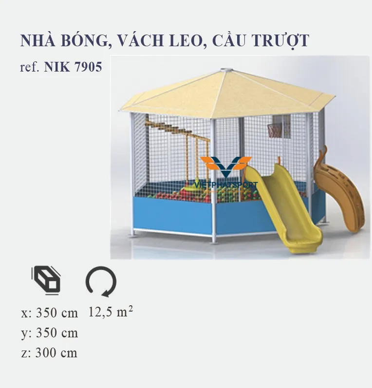 Diện tích lắp đặt phù hợp của Nhà bóng, vách leo, cậu trượt NIK7905