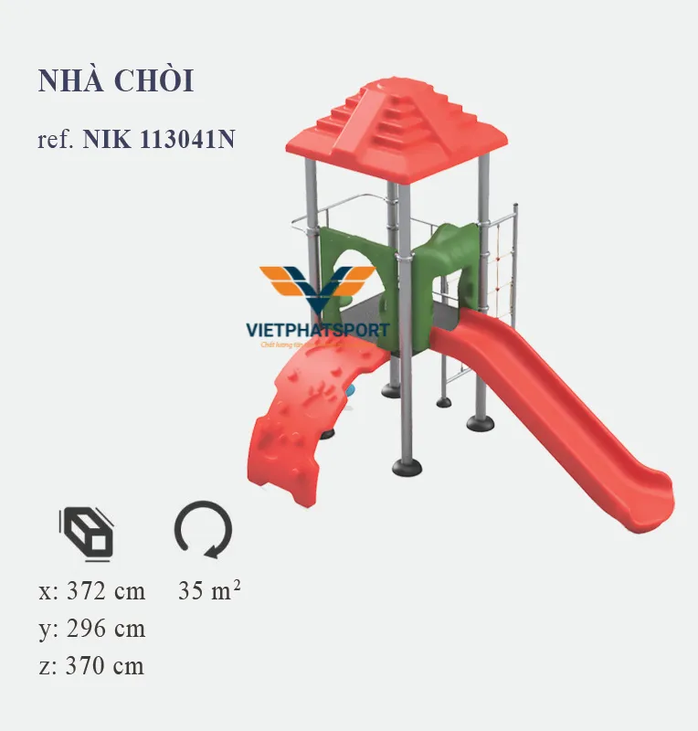 Việt Phát Sport tự hào là đơn vị cung cấp nhà chòi cầu tuột nhựa LLDPE NIK113041N chất lượng cao, đáp ứng mọi tiêu chuẩn an toàn và thẩm mỹ. Sản phẩm của chúng tôi mang đến nhiều ưu điểm vượt trội: