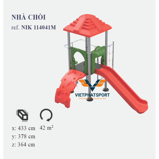 Nhà chòi cầu tuột nhựa LLDPE NIK114041M là lựa chọn hoàn hảo cho các khu vui chơi trẻ em, trường học, khu dân cư và nhiều không gian công cộng khác. Sản phẩm được cung cấp bởi CÔNG TY CỔ PHẦN THỂ THAO VIỆT PHÁT, thương hiệu Việt uy tín với nhiều năm kinh nghiệm trong lĩnh vực cung cấp và thi công dụng cụ thể dục thể thao. Nhà chòi cầu tuột nhựa LLDPE NIK114041M không chỉ mang đến những giờ phút vui chơi sảng khoái cho trẻ mà còn đảm bảo an toàn tuyệt đối nhờ chất liệu cao cấp và quy trình sản xuất nghiêm ngặt.