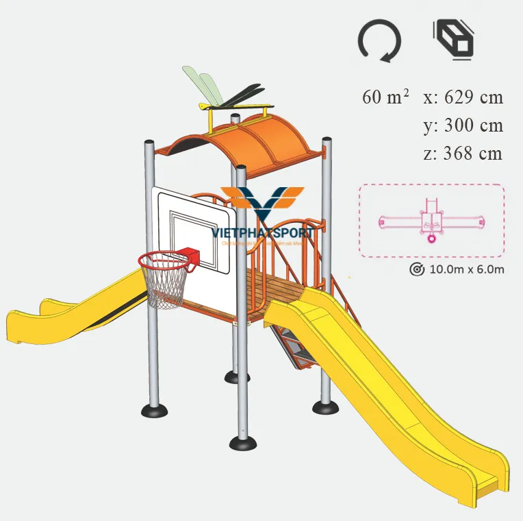 Diện tích lắp đặt phù hợp của Nhà chòi Thang leo, 2 cầu trượt, bóng rổ NIK731146-4