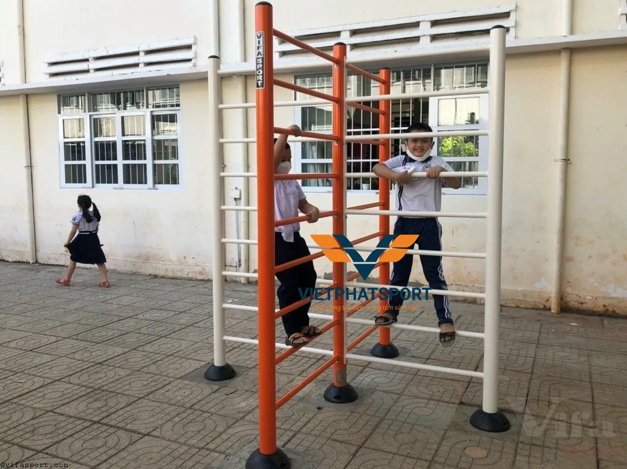 Hình ảnh thực tế của Thang leo chữ X NIK731145 tại trường tiểu học
