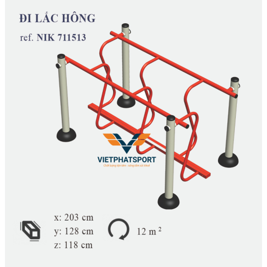 Trong bối cảnh cuộc sống hiện đại ngày càng chú trọng đến sức khỏe và thể chất, việc trang bị các thiết bị vận động ngoài trời trở nên vô cùng quan trọng. Thiết bị đi lắc hông NIK711513 của CÔNG TY CỔ PHẦN THỂ THAO VIỆT PHÁT là một giải pháp lý tưởng, mang đến những lợi ích tuyệt vời cho sức khỏe, đồng thời tạo ra không gian vui chơi, rèn luyện thể chất lành mạnh cho cộng đồng.