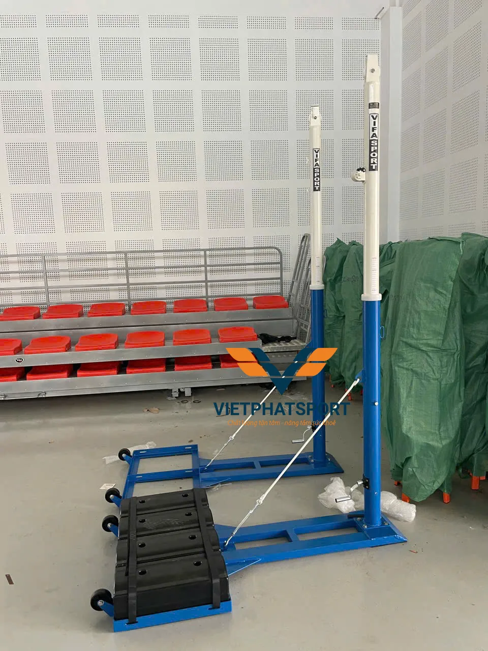 Trụ bóng chuyền di động 443182TN được lắp đặt tại nhà thi đấu