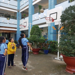Trụ bóng rổ được lắp tại trường THCS Vĩnh Tân, Bình Dương
