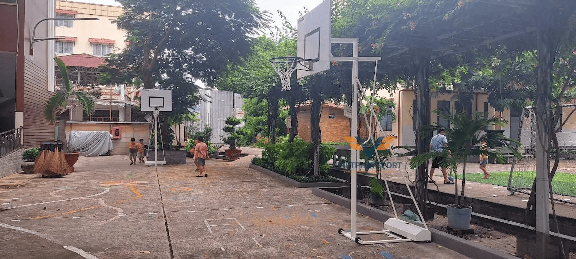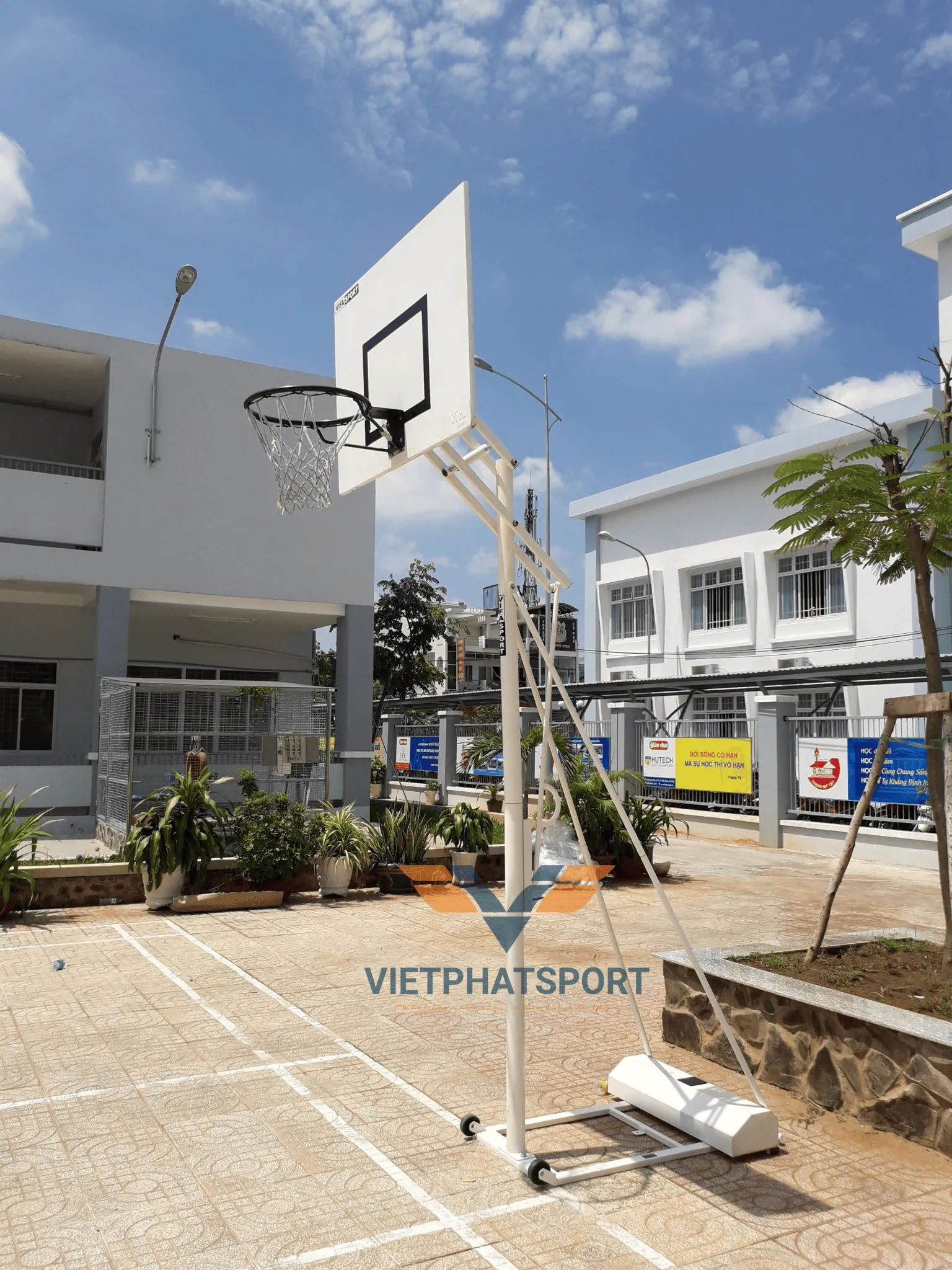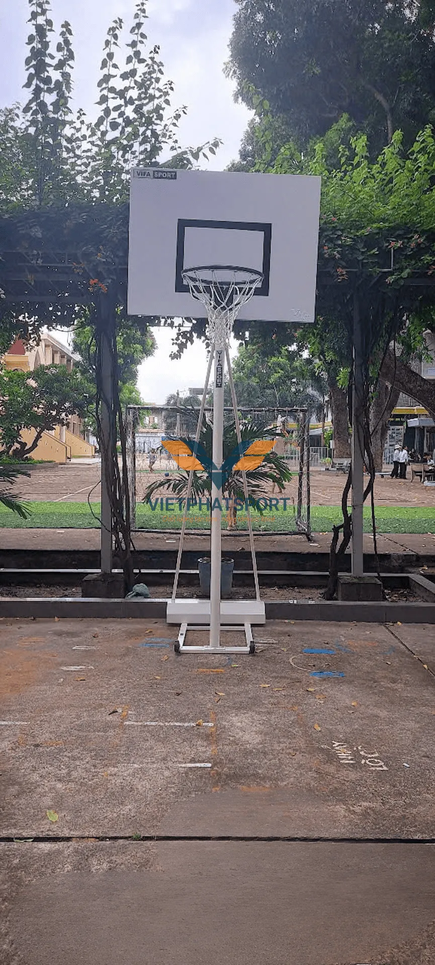 Hình ảnh thực tế của trụ bóng rổ lắp tại Trường THPT Nguyễn Du, Bình Thạnh