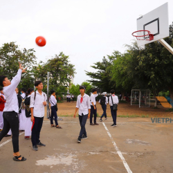 Trụ bóng rổ được lắp tại Trường THPT Thanh Tuyền, Bình Dương