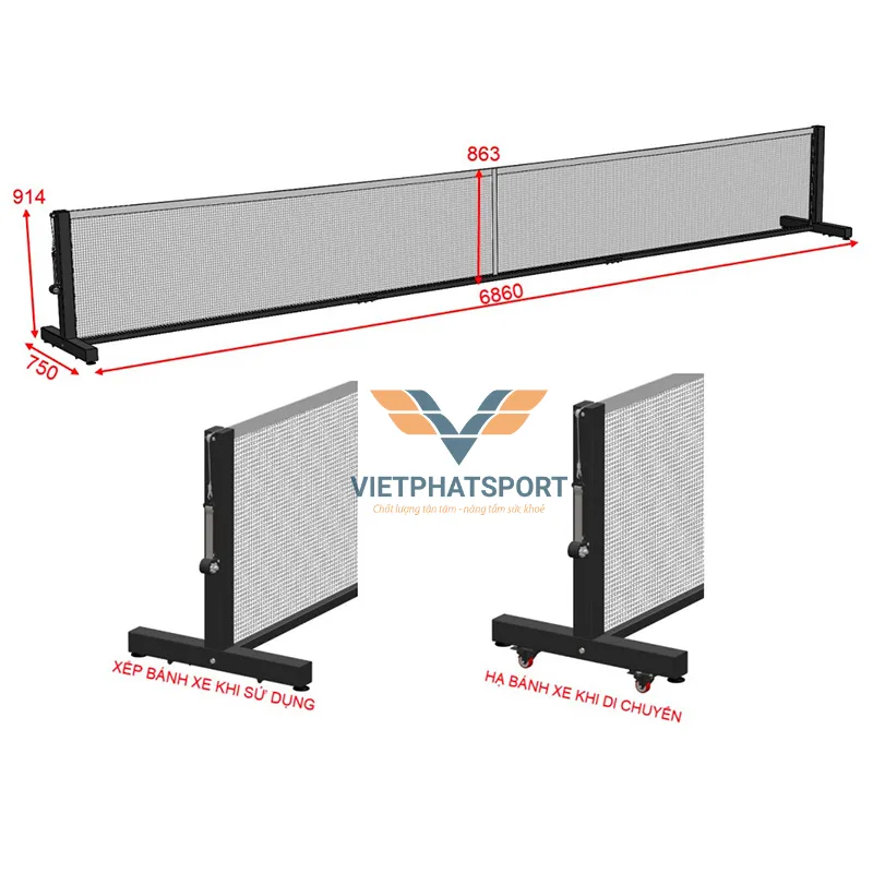 Trụ Pickleball thi đấu di động 303704-P do Công ty Việt Pháp sản xuất là lựa chọn lý tưởng cho các sân pickleball trong nhà và ngoài trời. Với thiết kế thông minh, chất liệu bền bỉ và khả năng di động linh hoạt, sản phẩm này đáp ứng mọi nhu cầu của người chơi và nhà tổ chức giải đấu. Trụ Pickleball thi đấu di động 303704-P không chỉ đảm bảo tính ổn định và an toàn trong quá trình thi đấu, mà còn mang đến sự tiện lợi trong việc lắp đặt, di chuyển và bảo quản.