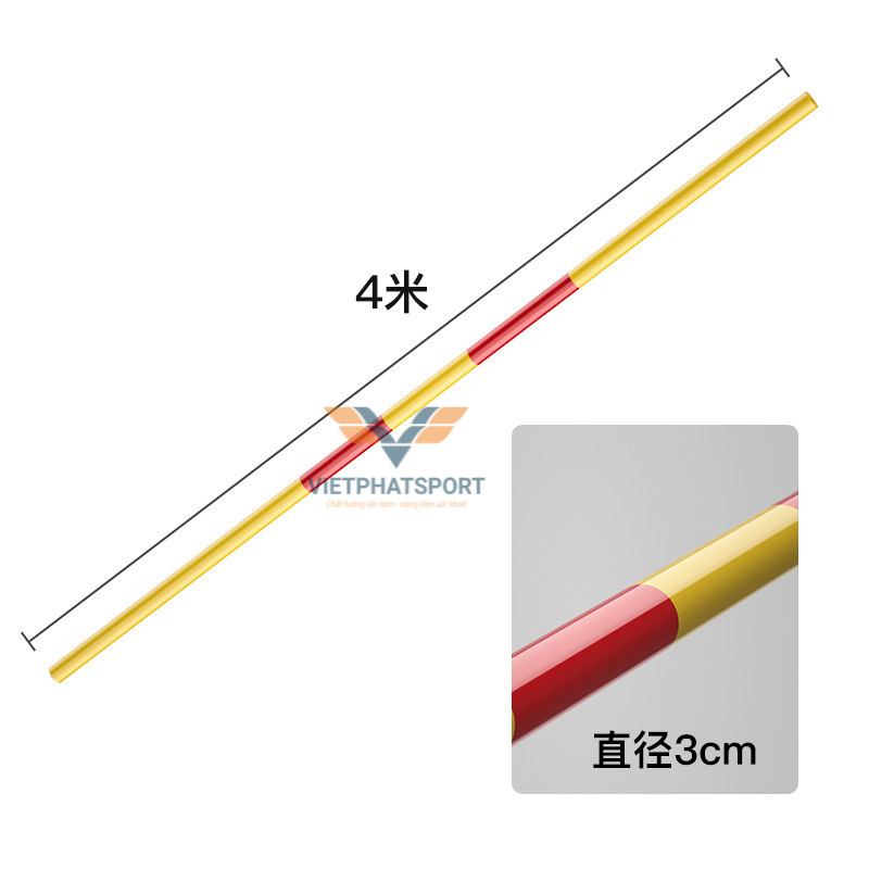 Với chiều dài tiêu chuẩn 4m và đường kính 25mm, xà nhảy cao fiberglass hoàn toàn phù hợp với các yêu cầu về kích thước trong cả tập luyện và thi đấu.