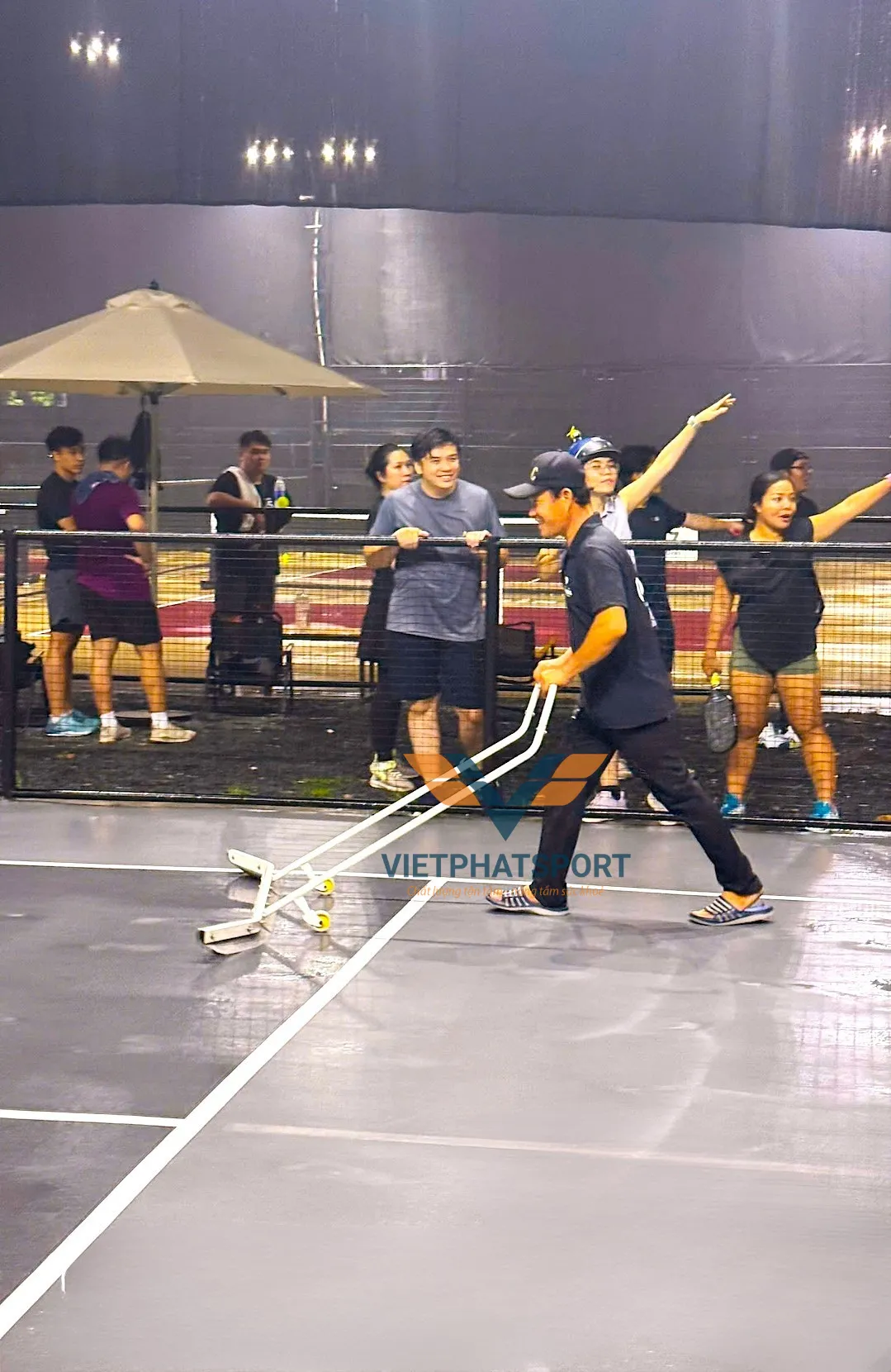 Sân tennis là một môi trường đòi hỏi sự chăm sóc kỹ lưỡng để đảm bảo chất lượng thi đấu và tuổi thọ của bề mặt. Một trong những yếu tố quan trọng nhất để duy trì một sân tennis ở trạng thái tốt nhất chính là việc kiểm soát độ ẩm. Nước đọng trên sân không chỉ gây trơn trượt, tiềm ẩn nguy cơ chấn thương cho người chơi mà còn có thể làm hỏng lớp bề mặt sân theo thời gian. Hiểu được điều này, CÔNG TY CỔ PHẦN THỂ THAO VIỆT PHÁT tự hào giới thiệu sản phẩm Xe gạt nước sân tennis 301360 – một giải pháp hiệu quả và chuyên nghiệp, được thiết kế để đáp ứng mọi yêu cầu khắt khe nhất trong việc bảo trì sân tennis.