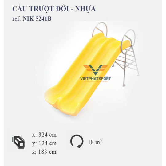 Được cung cấp bởi CÔNG TY CỔ PHẦN THỂ THAO VIỆT PHÁT, cầu trượt đôi NIK5241B tự hào là sản phẩm Việt Nam đạt chuẩn Australia về dụng cụ ngoài trời, đồng thời đạt các chứng nhận ISO 9001:2015, ISO 14001:2015, ISO 45001:2018. Chất lượng sản phẩm được đảm bảo theo tiêu chuẩn cơ sở TCCS 01:2016/VIFA và chứng nhận của Liên đoàn Thể dục Việt Nam.