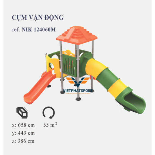 Cụm vận động cầu tuột ống nhựa LLDPE NIK124060M được sản xuất và cung cấp bởi Công ty Cổ phần Thể thao Việt Phát, đơn vị uy tín hàng đầu trong lĩnh vực cung cấp và thi công dụng cụ thể dục thể thao. Sản phẩm không chỉ đáp ứng các tiêu chuẩn khắt khe về chất lượng mà còn mang tính thẩm mỹ cao, phù hợp với nhiều không gian khác nhau.