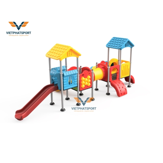 Nhựa LLDPE được lựa chọn bởi độ bền cao, khả năng chống chịu thời tiết tốt và đặc biệt an toàn cho trẻ em. Khung thép ống chắc chắn, được xử lý mạ kẽm nhúng nóng và sơn tĩnh điện, đảm bảo độ bền lên đến 15 năm, chống gỉ sét và ăn mòn hiệu quả.
