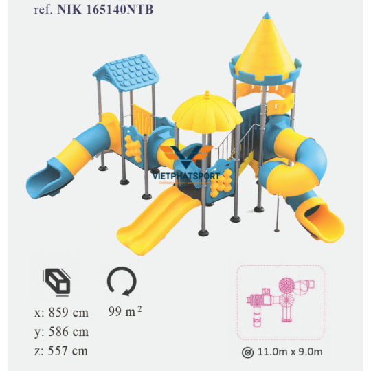 Diện tích lắp đặt phù hợp của Cụm vận động liên hoàn LLDPE NIK165140NTB