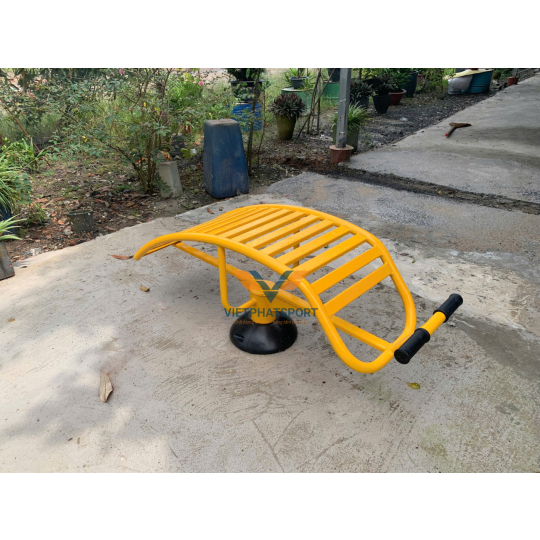 Dụng cụ lưng bụng đơn giá rẻ được chế tạo từ thép ống D114x3 và D34x2, đảm bảo độ chắc chắn và khả năng chịu lực cao. Bề mặt được xử lý bằng phương pháp mạ kẽm nhúng nóng và sơn tĩnh điện, giúp chống lại các tác động của thời tiết, kéo dài tuổi thọ sản phẩm.