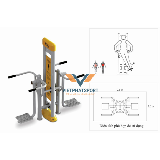 - Thiết kế thanh thoát làm đẹp hơn cảnh quan môi trường; bền chắc và phù hợp mọi địa hình, thời tiết; chuẩn xác tư thế, động tác giúp người tập tăng cường sức khỏe.