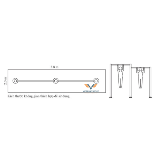 Diện tích sử dụng phù hợp của dụng cụ xà đơn 2 bậc