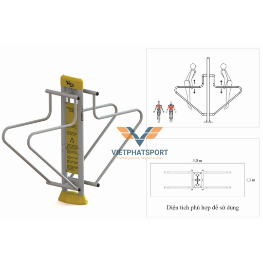 - Thiết kế thanh thoát làm đẹp hơn cảnh quan môi trường; bền chắc và phù hợp mọi địa hình, thời tiết; chuẩn xác tư thế, động tác giúp người tập tăng cường sức khỏe.