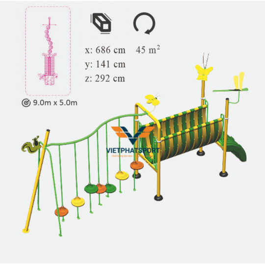 Diện tích lắp đặt phù hợp của Khung vận động chuyền dây, cầu nhựa NIK731003-DN