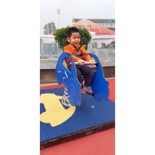 Sản phẩm được chế tạo từ các vật liệu chất lượng cao, đảm bảo độ bền và tuổi thọ lâu dài. Lò xo nhập khẩu có độ đàn hồi tốt, chịu lực cao, mang lại trải nghiệm nhún nhảy êm ái và an toàn cho trẻ. Tấm HPL (High-Pressure Laminate) hoặc HDPE (High-Density Polyethylene) được sử dụng cho phần thân xe, có khả năng chống chịu thời tiết khắc nghiệt, chống trầy xước và dễ dàng vệ sinh. Khung thép mạ kẽm nhúng nóng và sơn tĩnh điện giúp chống gỉ sét, kéo dài tuổi thọ của sản phẩm lên đến 15 năm.