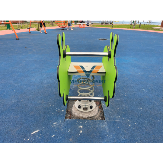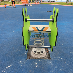 Sản phẩm sử dụng lò xo nhập khẩu, có độ đàn hồi tốt, chịu lực cao, mang đến trải nghiệm nhún nhảy êm ái và thú vị cho trẻ. Tấm HPL (High-Pressure Laminate) hoặc tấm HDPE (High-Density Polyethylene) được sử dụng cho phần thân, đảm bảo độ bền, chống chịu thời tiết tốt và dễ dàng vệ sinh. Khung thép mạ kẽm nhúng nóng, sơn tĩnh điện giúp tăng cường khả năng chống gỉ sét, kéo dài tuổi thọ sản phẩm lên đến 15 năm.