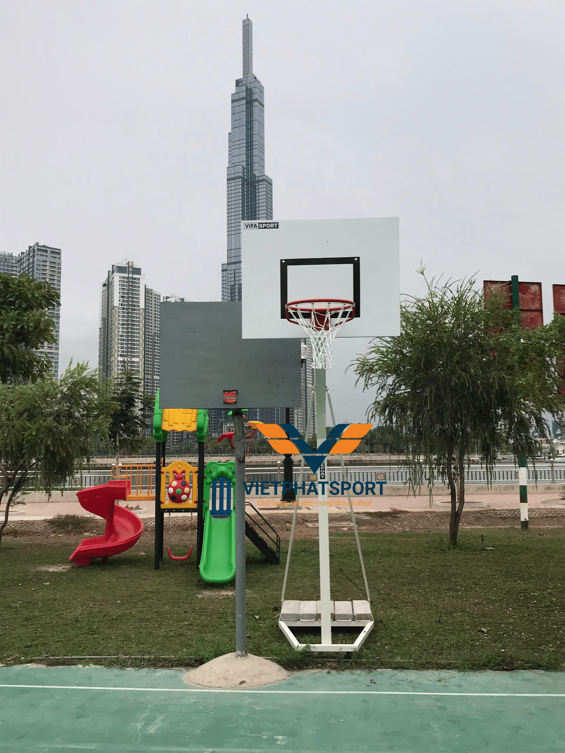 Trụ bóng rổ được lắp tại công viên Quận 2, TP. HCM