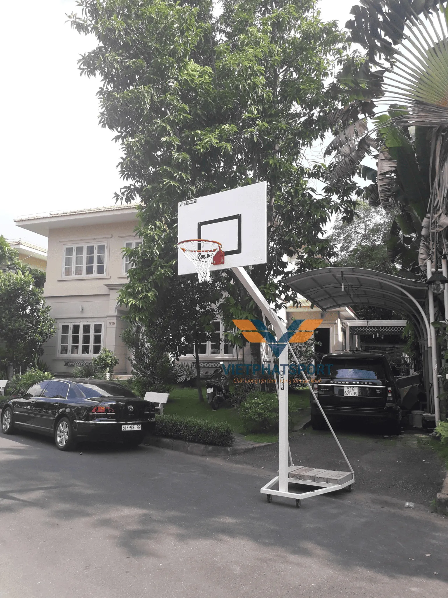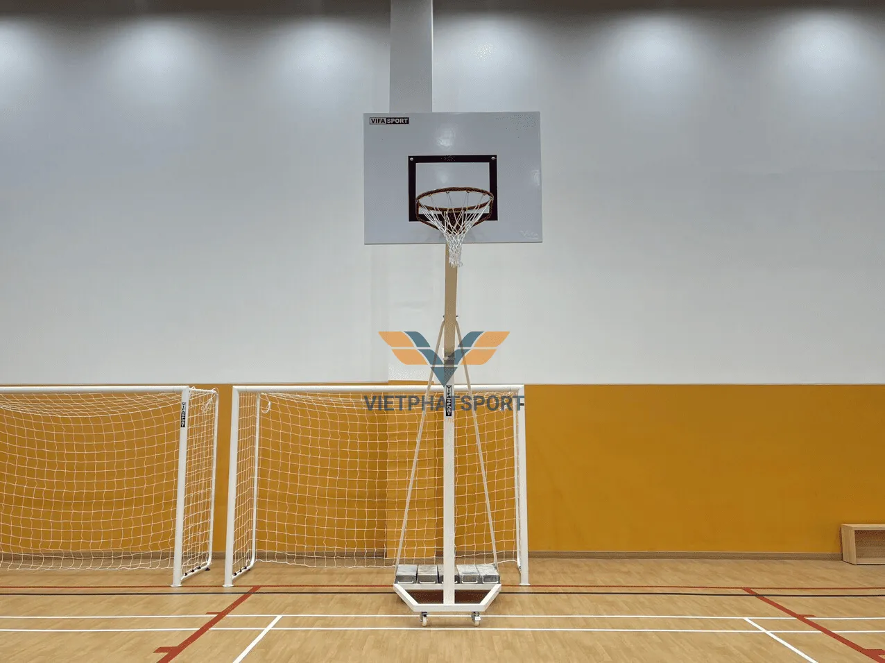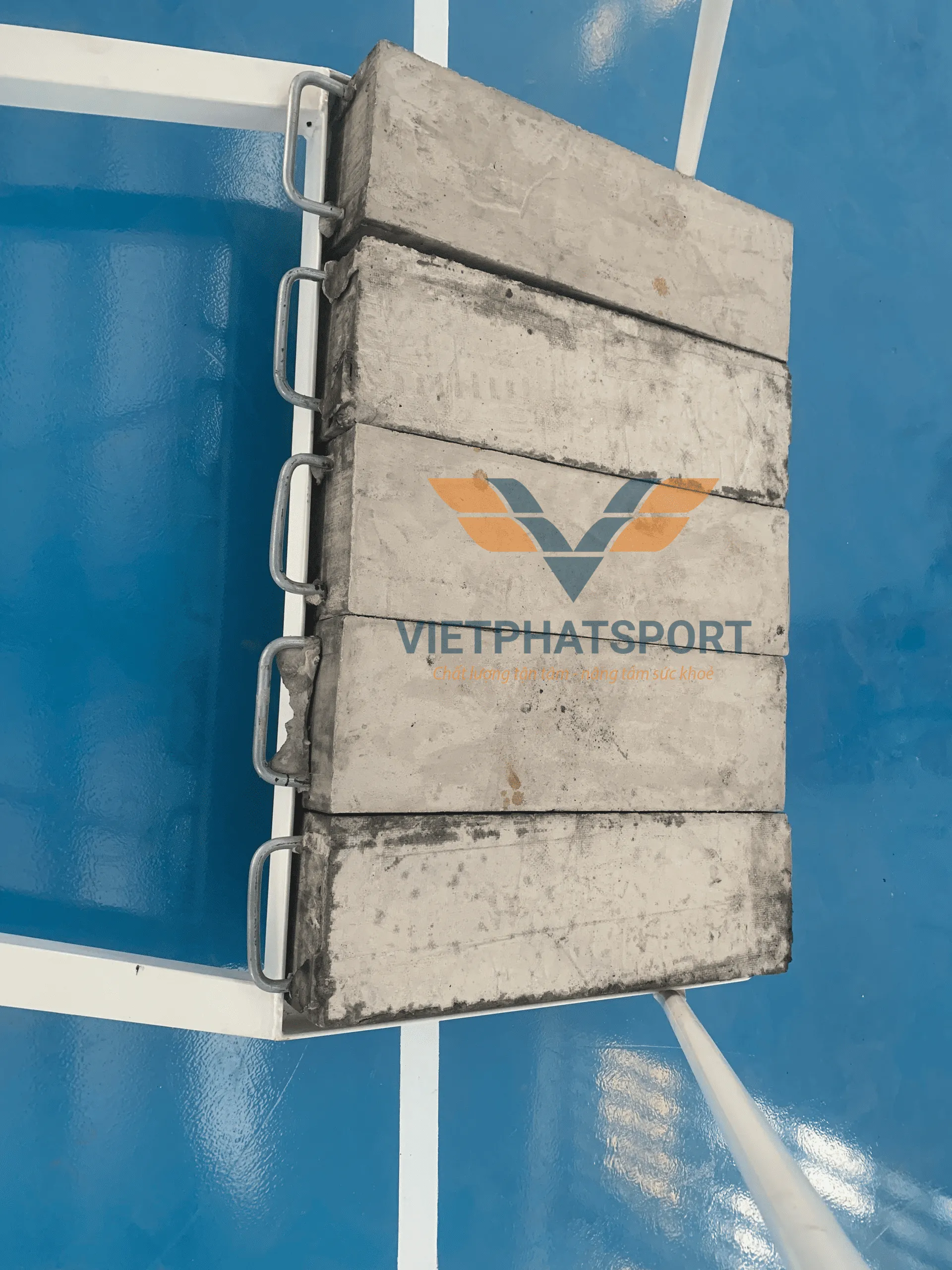 Trụ bóng rổ có 5 đối trọng, mỗi đối trọng nặng 20kg - giúp trụ chắc chắn khi chơi