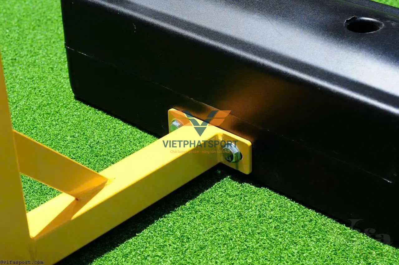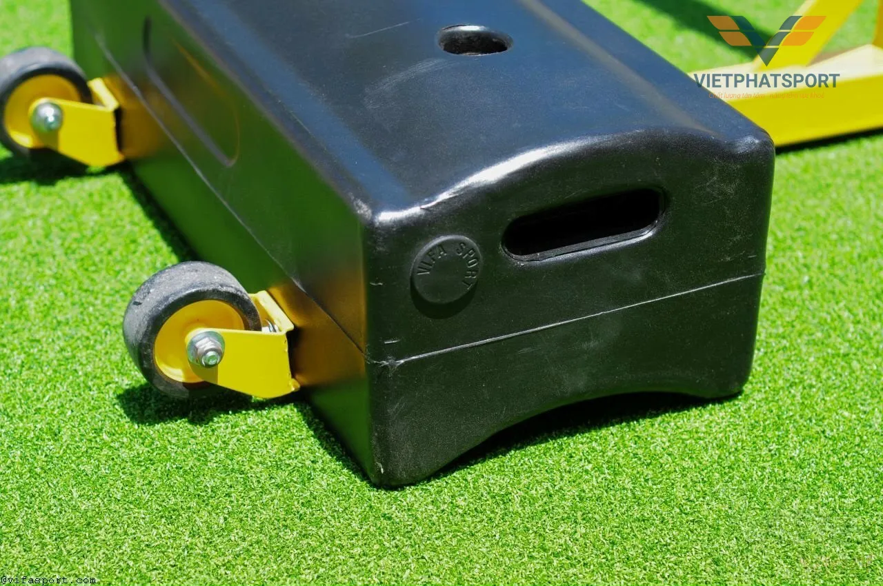 Một trong những điểm nhấn quan trọng của Trụ cầu lông 501513 chính là hệ thống đối trọng. Thay vì sử dụng các vật liệu nặng cố định, sản phẩm ứng dụng đối trọng bằng nhựa LLDPE cao cấp. Loại nhựa này nổi tiếng với độ bền, khả năng chống va đập, chịu nhiệt và đặc biệt là an toàn với sức khỏe con người, không chứa các hóa chất độc hại. Thiết kế thùng đối trọng cho phép người dùng tùy chỉnh trọng lượng theo nhu cầu, với khả năng chứa tối đa 25kg cát hoặc 40kg bê tông cho mỗi thùng. Sự linh hoạt này giúp đảm bảo trụ cầu lông luôn vững chắc, ổn định trên mọi địa hình, ngay cả trong điều kiện gió lớn, đồng thời dễ dàng di chuyển và lắp đặt.