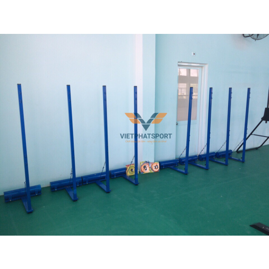Để tăng cường sự ổn định, trụ được trang bị hệ thống đối trọng hiệu quả với thép Ø114, mỗi trụ có khối lượng đối trọng lên đến 30kg. Thiết kế này không chỉ giữ cho trụ luôn cân bằng mà còn ngăn ngừa tình trạng đổ ngã, đảm bảo an toàn tuyệt đối cho người chơi.