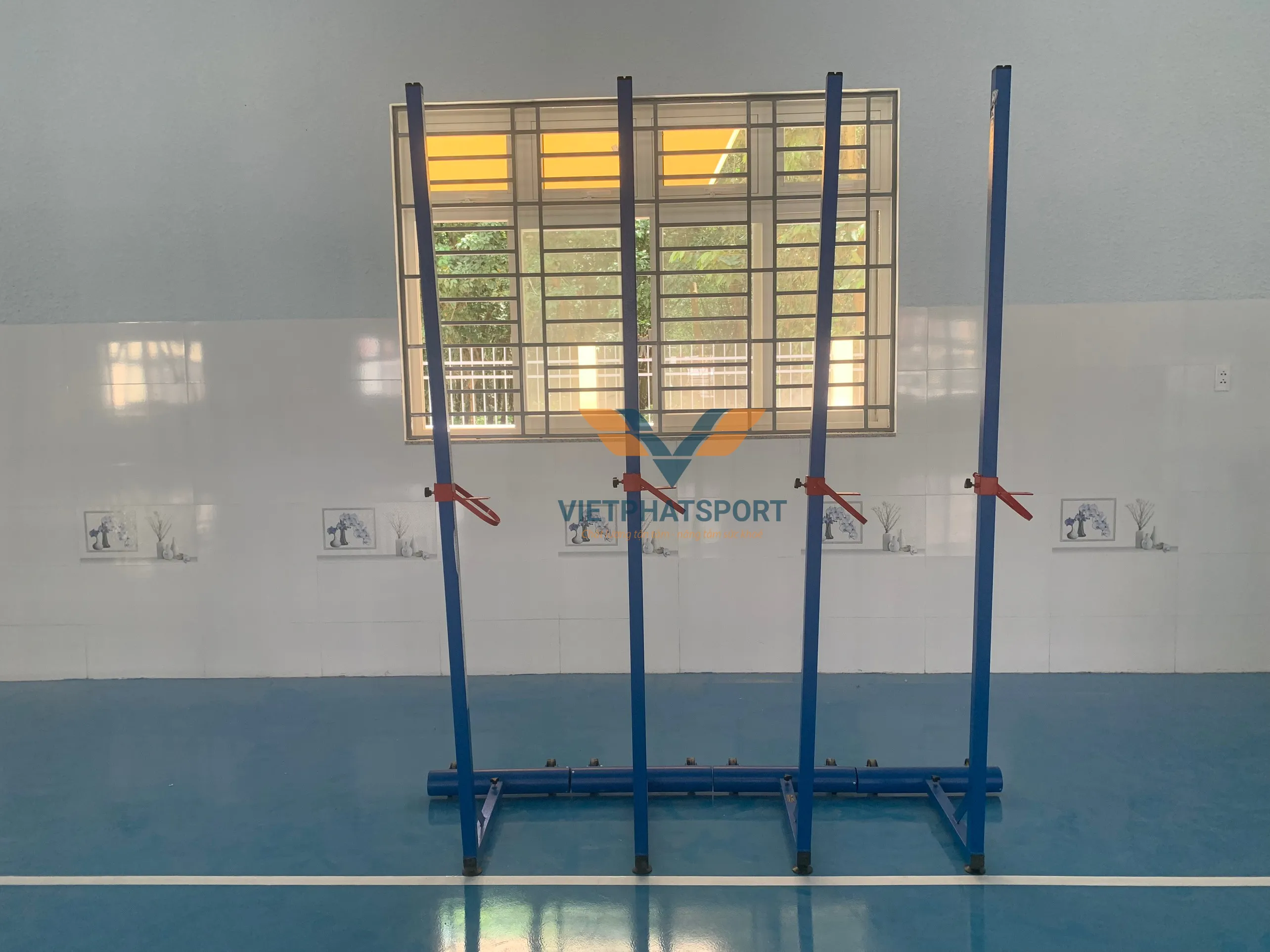 - Trụ nhảy cao 901910 có phù hợp cho sân tập ngoài trời không? Có, với cấu trúc thép hộp mạ kẽm và sơn tĩnh điện chống ăn mòn, sản phẩm có thể sử dụng tốt trong môi trường ngoài trời.