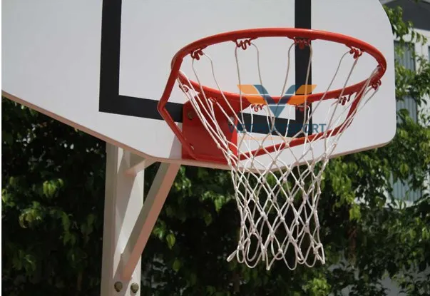 Vành rổ được chế tạo từ thép ống tráng kẽm Ø21, mang lại khả năng chống gỉ sét và ăn mòn tuyệt vời. Gọng dưới sử dụng thép đặc Ø16, tăng cường độ cứng và khả năng chịu lực. Móc lưới được làm từ thép đặc Ø3, đảm bảo sự chắc chắn và an toàn khi sử dụng. Thép tấm dày 3mm được sử dụng để gia cố, giúp vành rổ chịu được những cú ném mạnh mẽ.