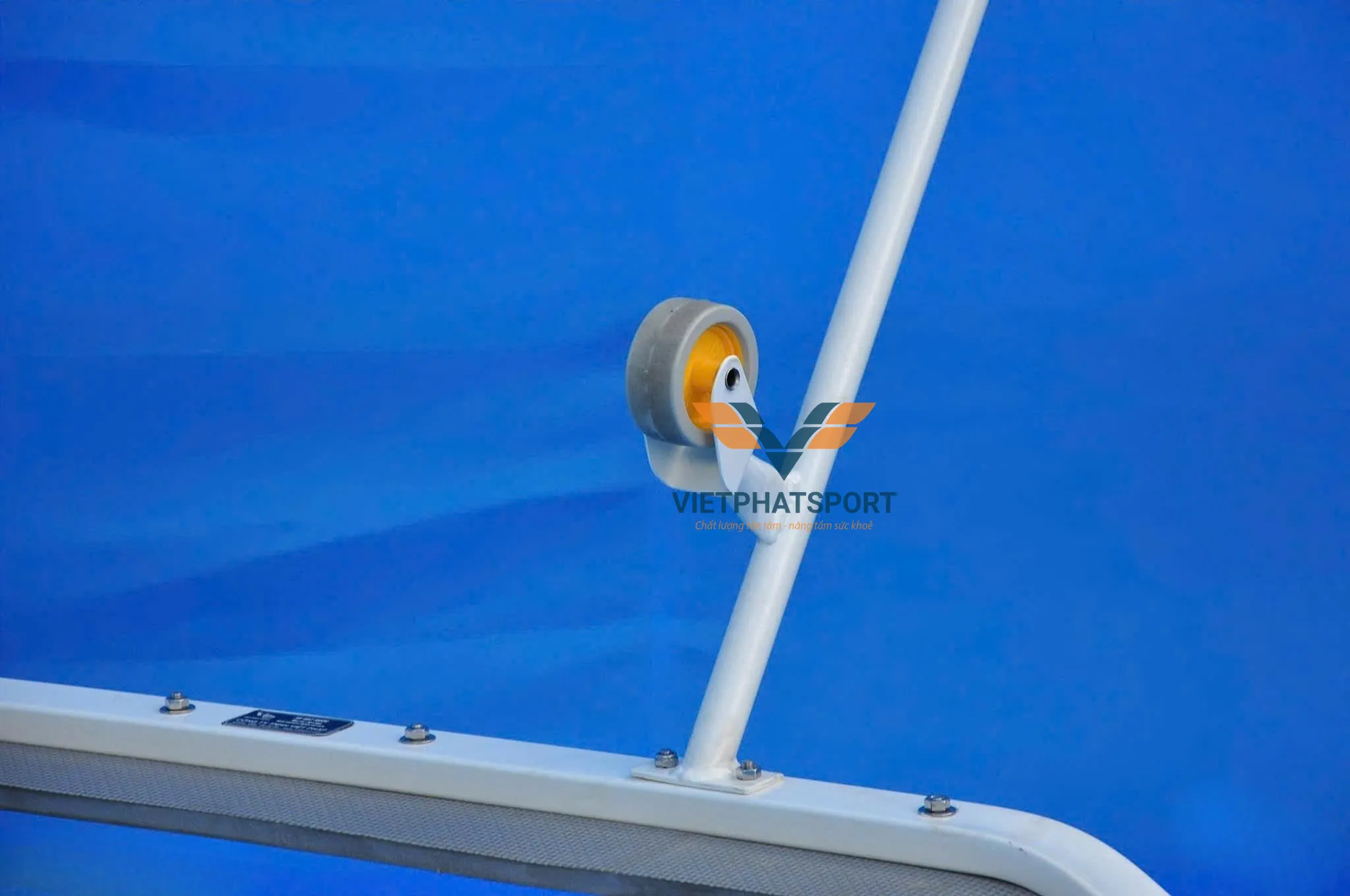 Để tối ưu hóa khả năng di chuyển, Xe gạt nước sân tennis 301360 được trang bị 02 bánh xe PU Ø65. Bánh xe làm từ chất liệu Polyurethane (PU) mang lại sự êm ái, giảm thiểu tiếng ồn khi di chuyển và có độ bền cao, chịu lực tốt, phù hợp với nhiều loại địa hình sân khác nhau. Kích thước tổng thể của xe là R140 x D160cm, một kích thước lý tưởng, dễ dàng thao tác mà vẫn đảm bảo hiệu quả làm việc trên diện rộng. Trọng lượng ước tính chỉ 8kg giúp người sử dụng có thể dễ dàng di chuyển xe mà không tốn nhiều sức lực.